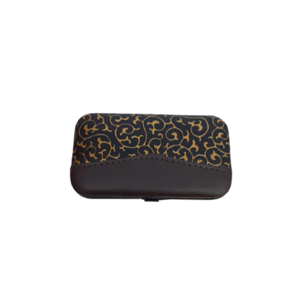 Set de manicura x 6 piezas de acero. Estuche de simil cuero estampado. Medidas 10cmx6cm.
